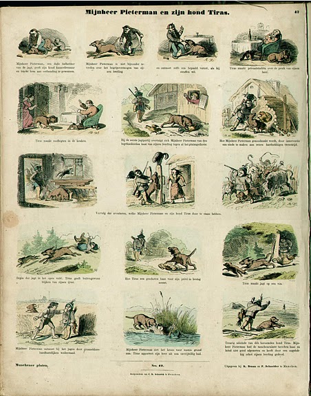 D. De 19e eeuwse centsprent 'Mijnheer Pieterman en zijn hond Tiras'